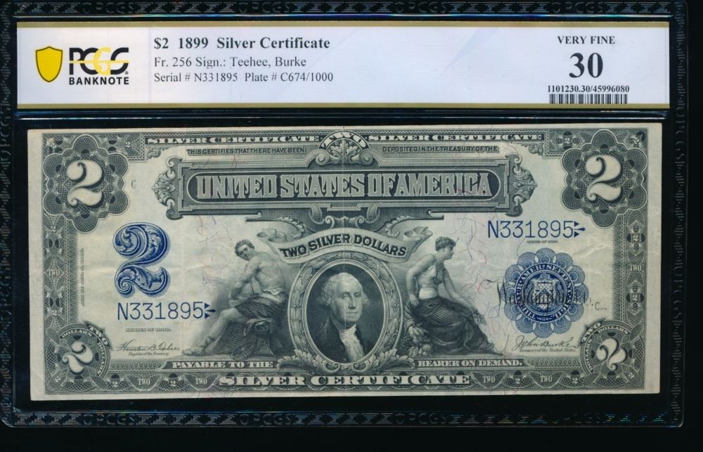 One 1899 $2 Mini Porthole Silver Certificate PCGS 30.