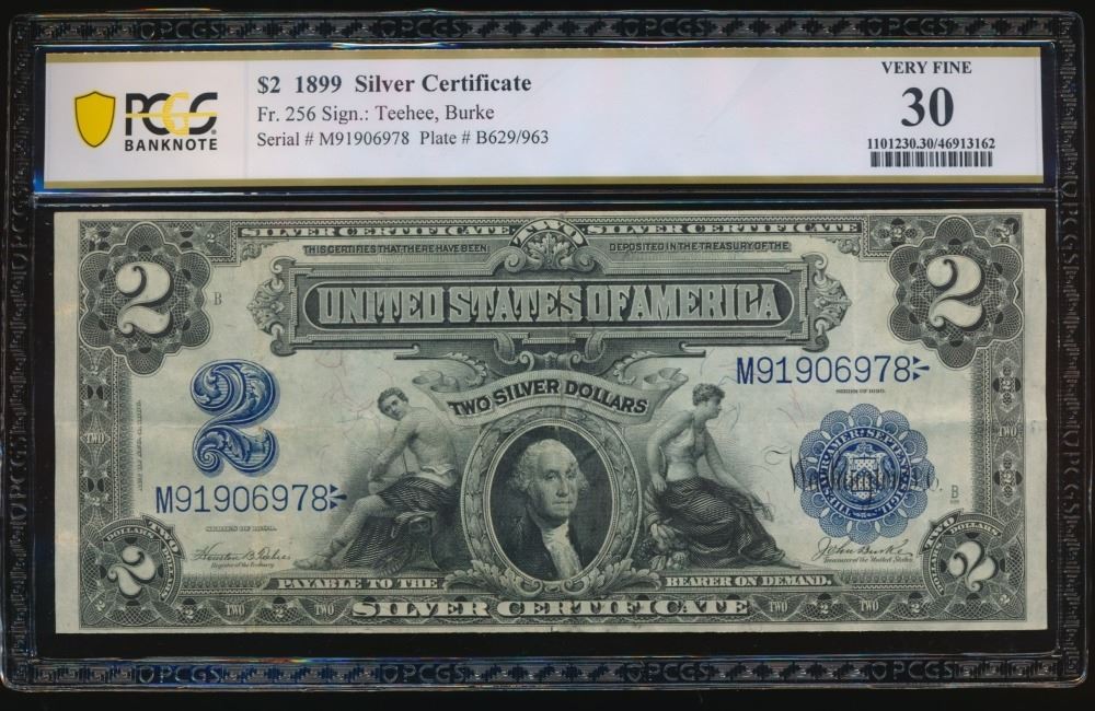 One 1899 $2 Mini Porthole Silver Certificate PCGS 30.