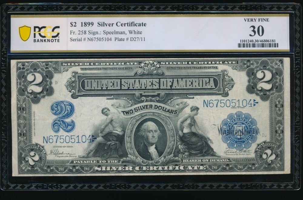 One 1899 $2 Mini Porthole Silver Certificate PCGS 30.