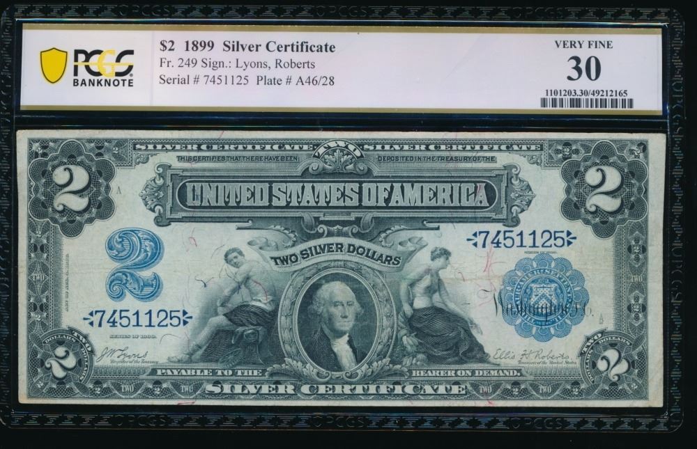One 1899 $2 Mini Porthole Silver Certificate PCGS 30.