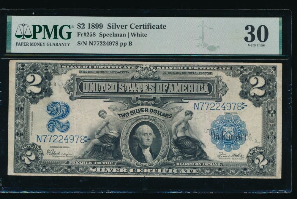 One 1899 $2 Mini Porthole Silver Certificate PCGS 30.