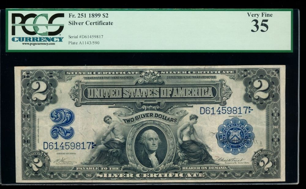 One 1899 $2 Mini Porthole Silver Certificate PCGS 35.