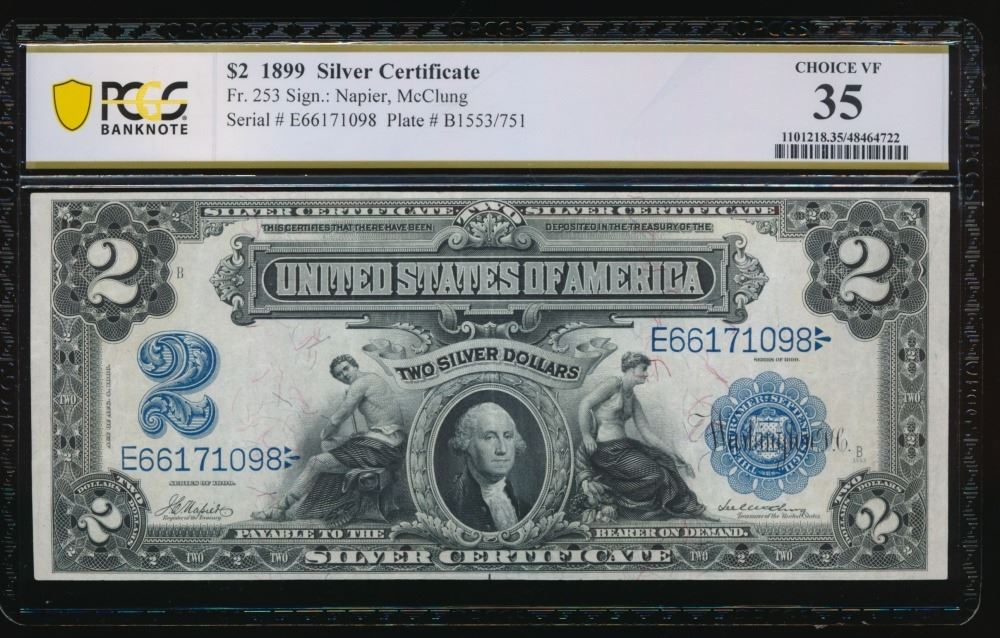 One 1899 $2 Mini Porthole Silver Certificate PCGS 35.
