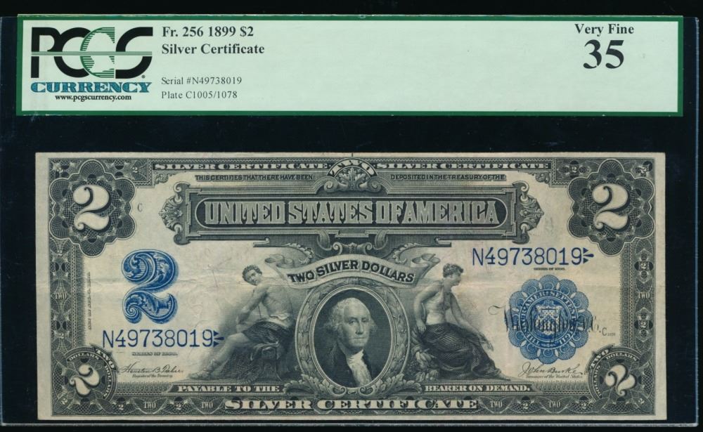 One 1899 $2 Mini Porthole Silver Certificate PCGS 35.