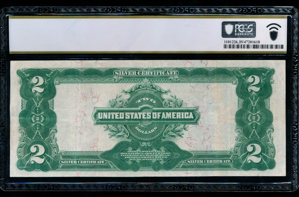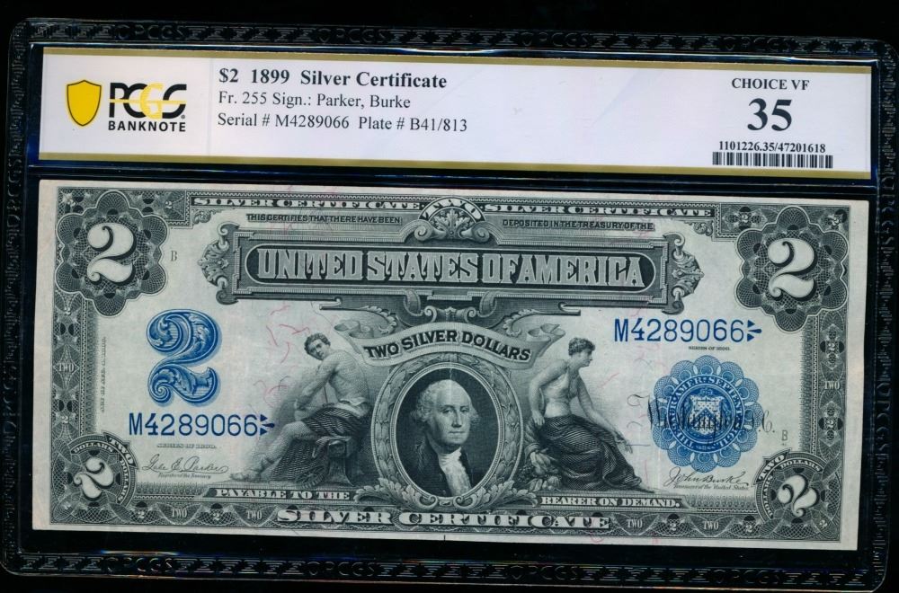 One 1899 $2 Mini Porthole Silver Certificate PCGS 35.