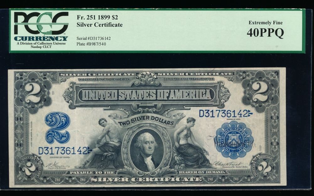 One 1899 $2 Mini Porthole Silver Certificate PCGS 40PPQ.