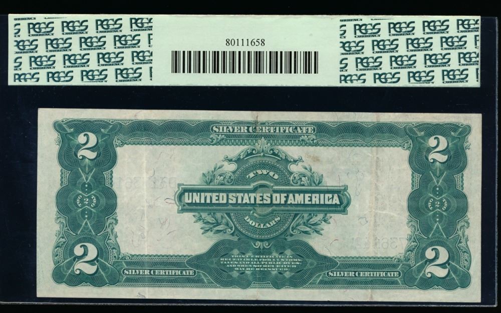 One 1899 $2 Mini Porthole Silver Certificate PCGS 40PPQ.