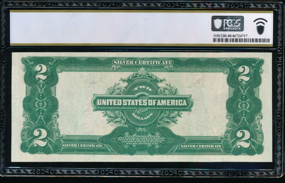 One 1899 $2 Mini Porthole Silver Certificate PCGS 40PPQ.