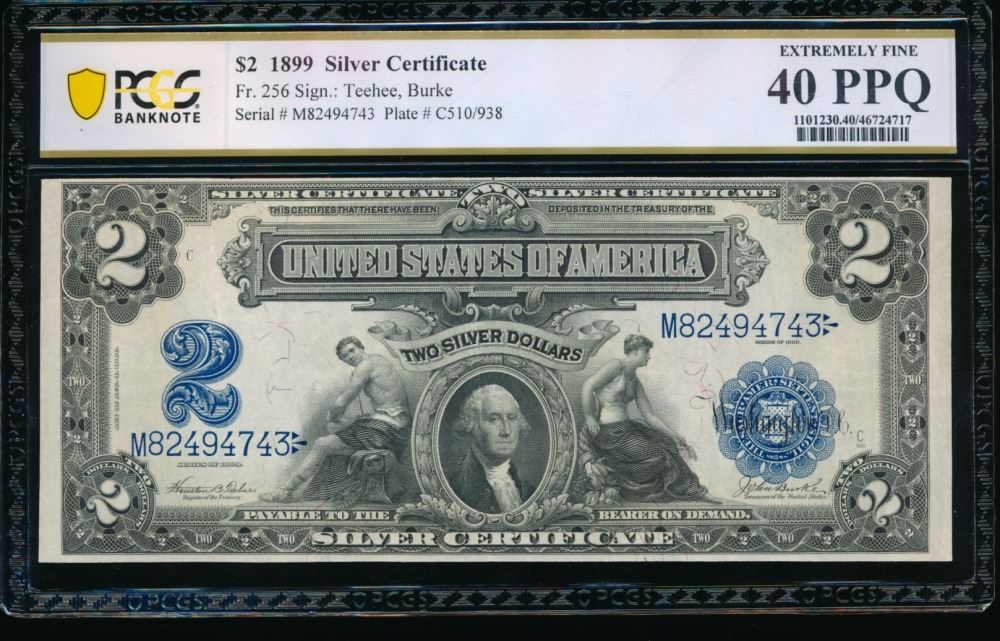 One 1899 $2 Mini Porthole Silver Certificate PCGS 40PPQ.