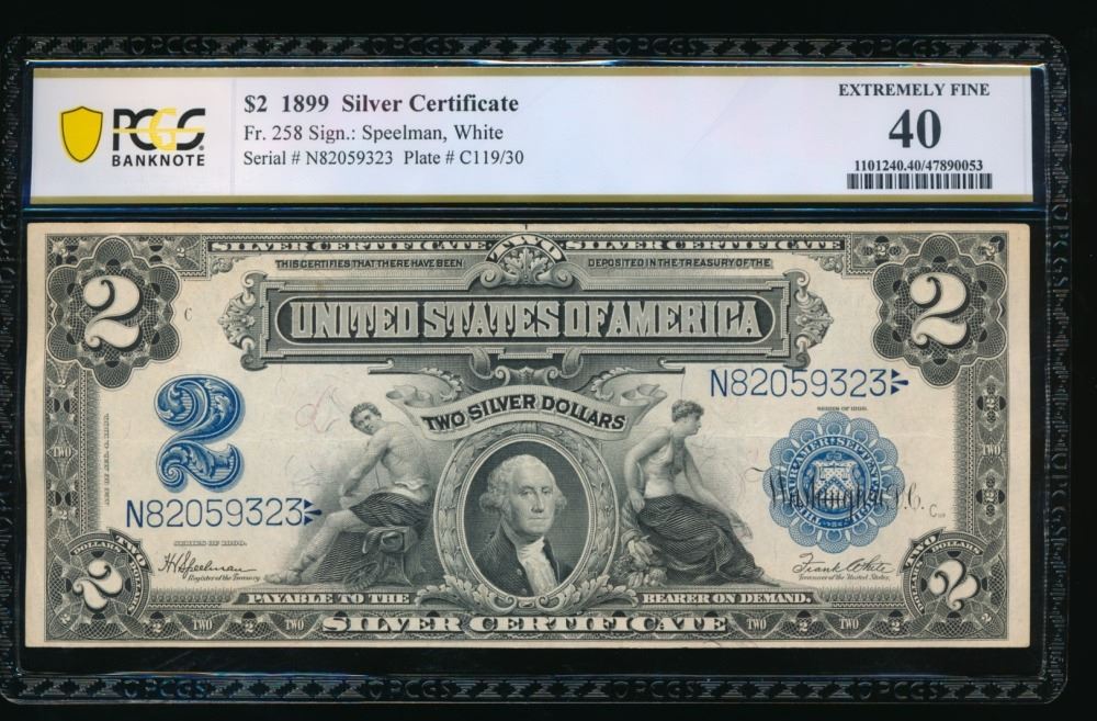 One 1899 $2 Mini Porthole Silver Certificate PCGS 40.