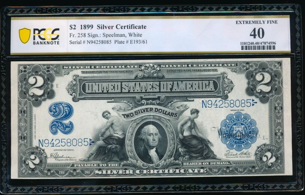One 1899 $2 Mini Porthole Silver Certificate PCGS 40.