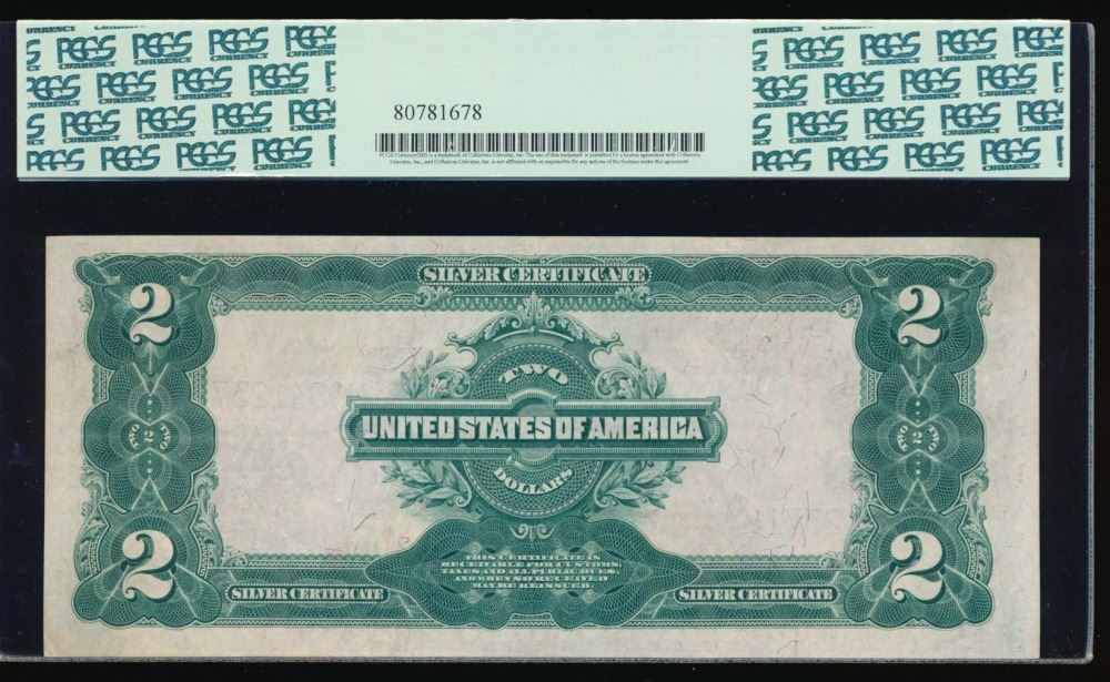 One 1899 $2 Mini Porthole Silver Certificate PCGS 55.