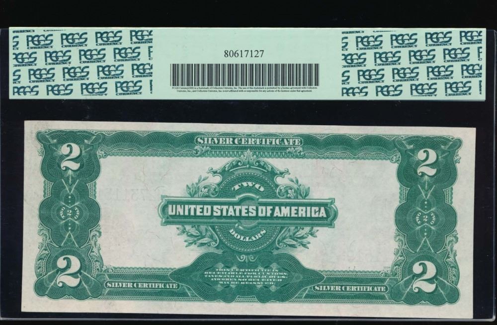 One 1899 $2 Mini Porthole Silver Certificate PCGS 58.