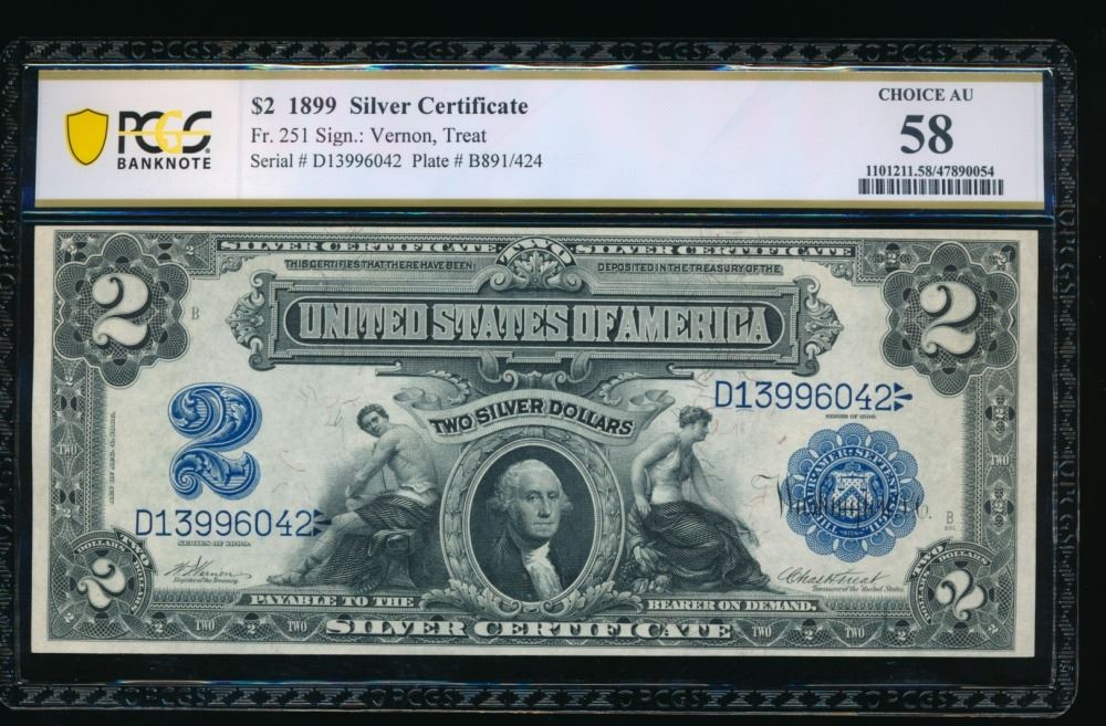 One 1899 $2 Mini Porthole Silver Certificate PCGS 58.