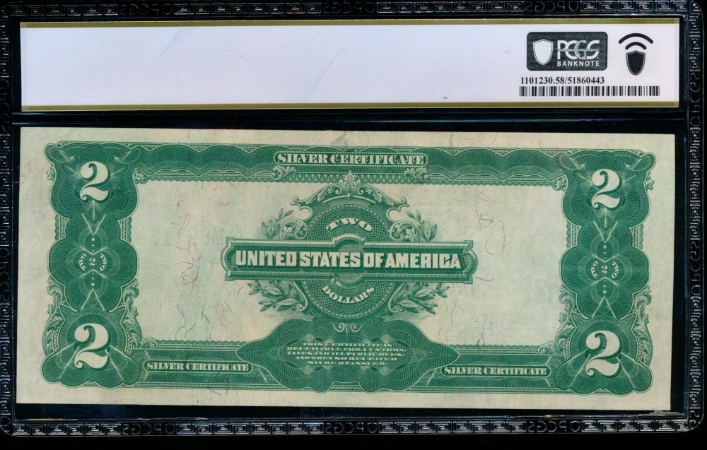 One 1899 $2 Mini Porthole Silver Certificate PCGS 58.