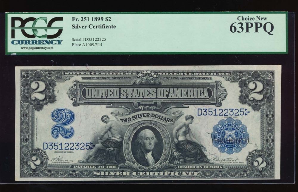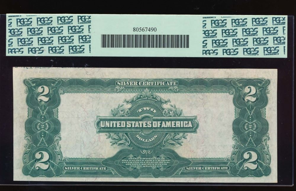 One 1899 $2 Mini Porthole Silver Certificate PCGS 63PPQ.