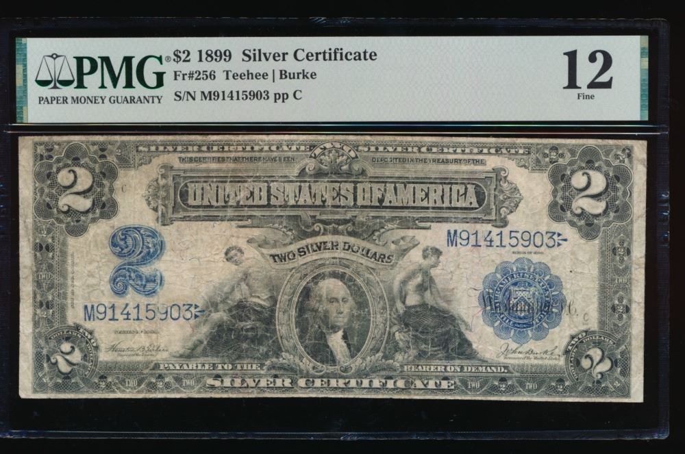 One 1899 $2 Mini Porthole Silver Certificate PMG 12.