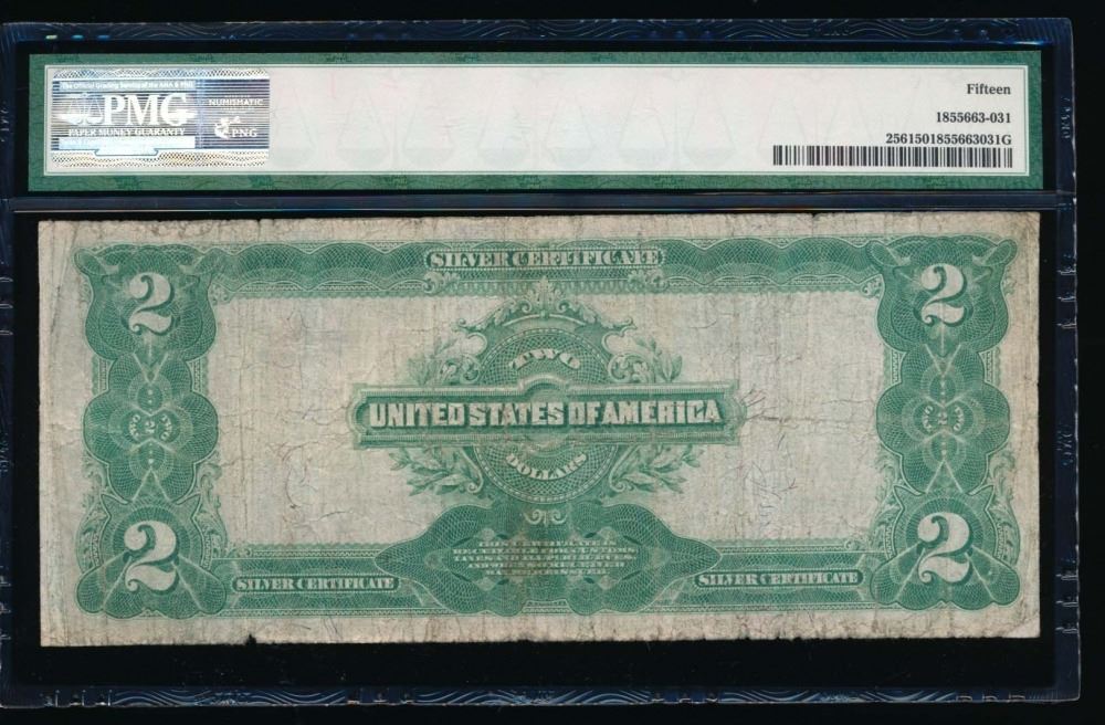 One 1899 $2 Mini Porthole Silver Certificate PMG 15.