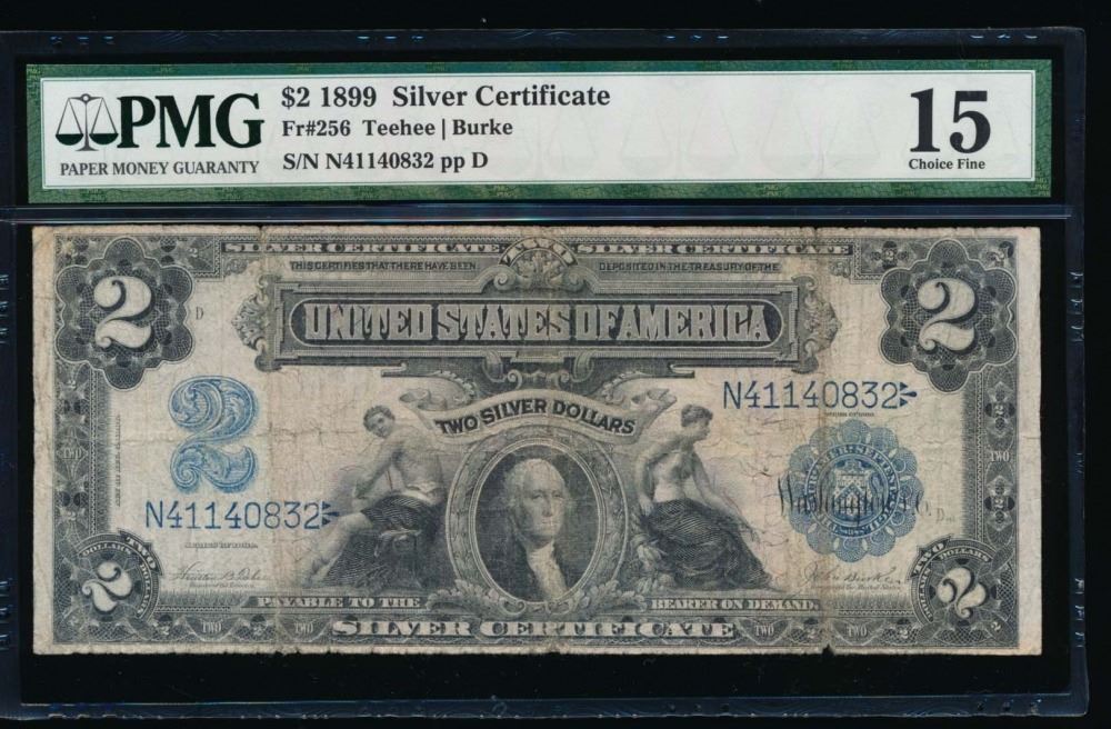One 1899 $2 Mini Porthole Silver Certificate PMG 15.
