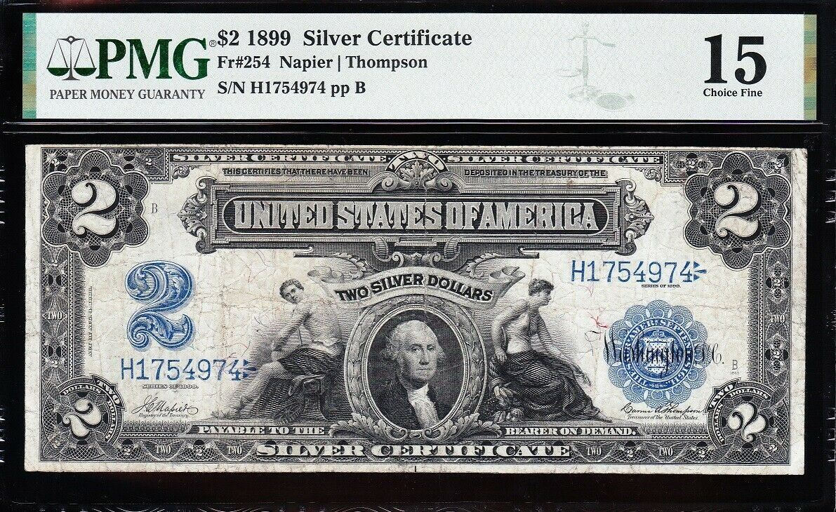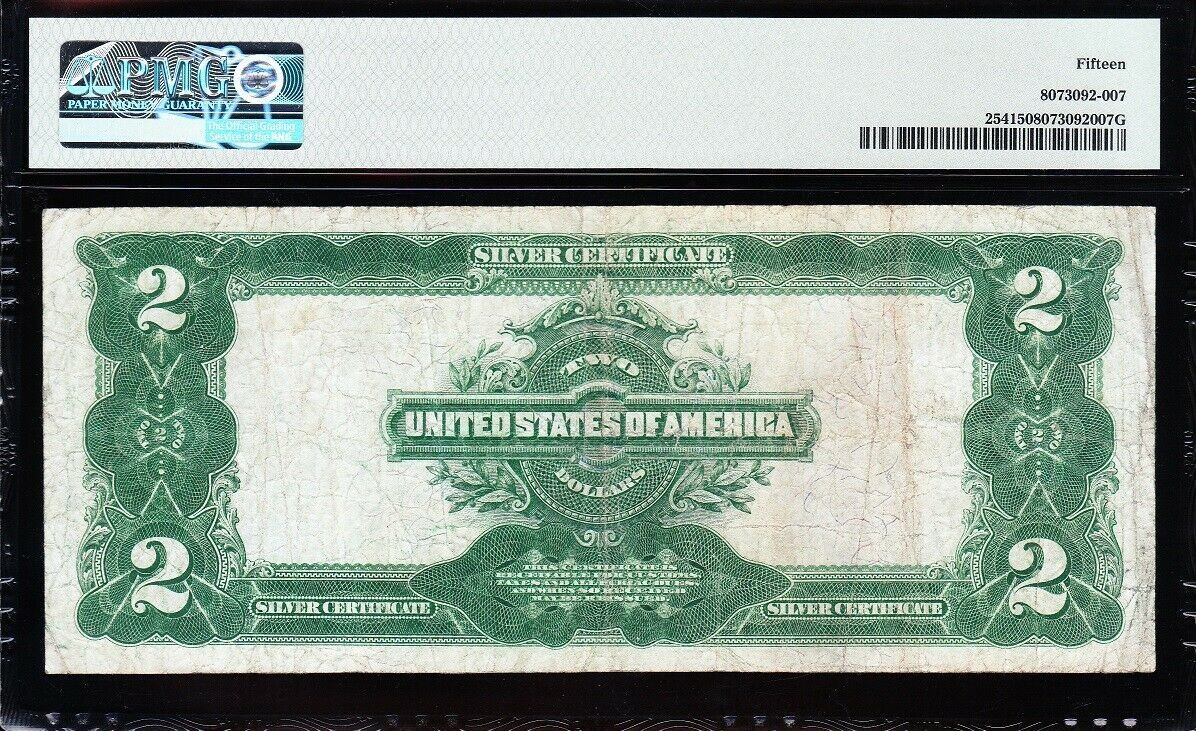 One 1899 $2 Mini Porthole Silver Certificate PMG 15.