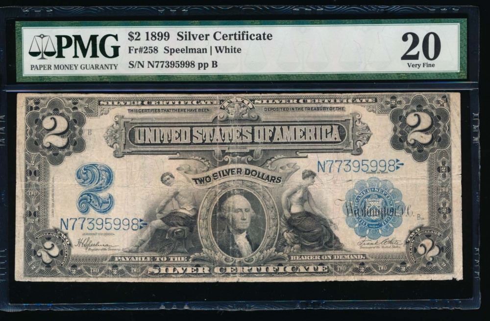 One 1899 $2 Mini Porthole Silver Certificate PMG 20.