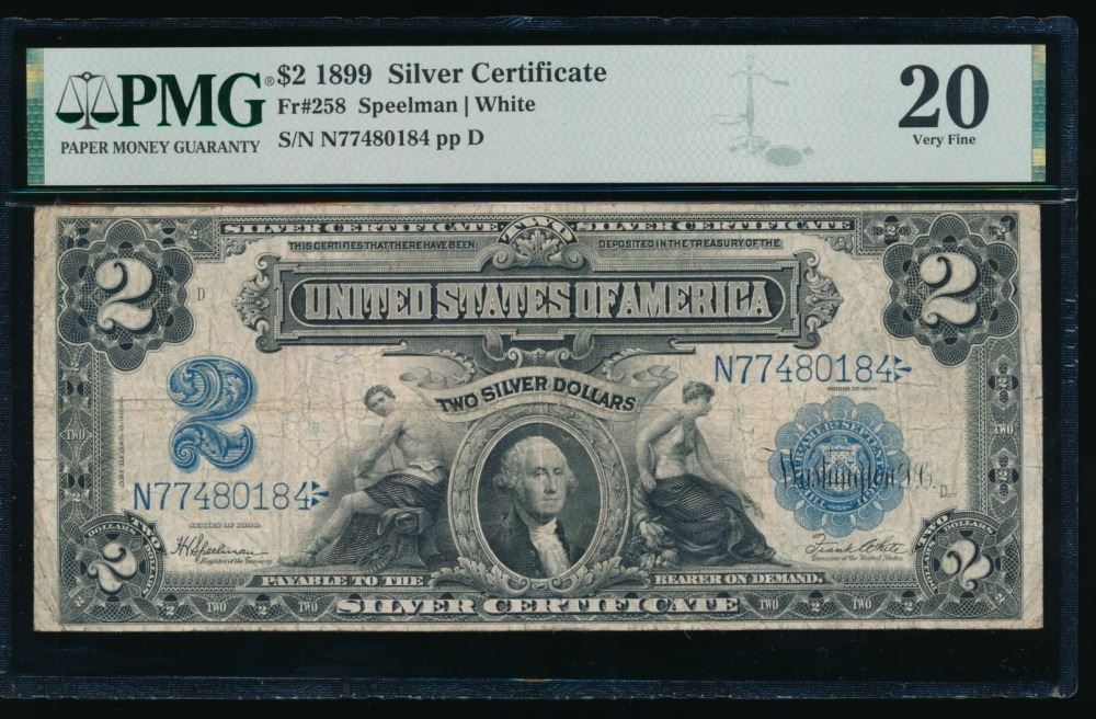 One 1899 $2 Mini Porthole Silver Certificate PMG 20.
