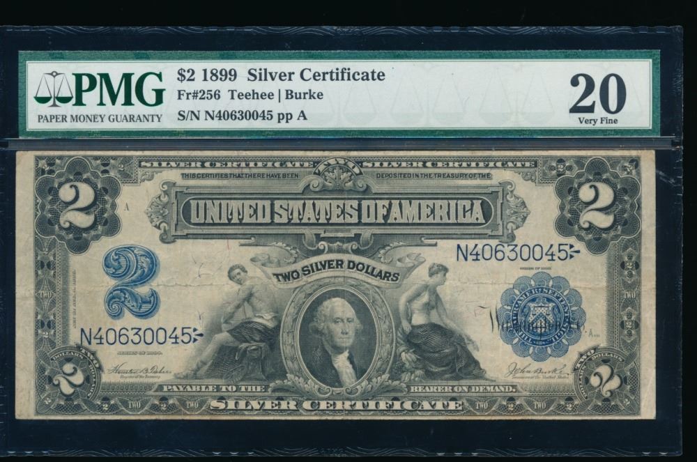 One 1899 $2 Mini Porthole Silver Certificate PMG 20.