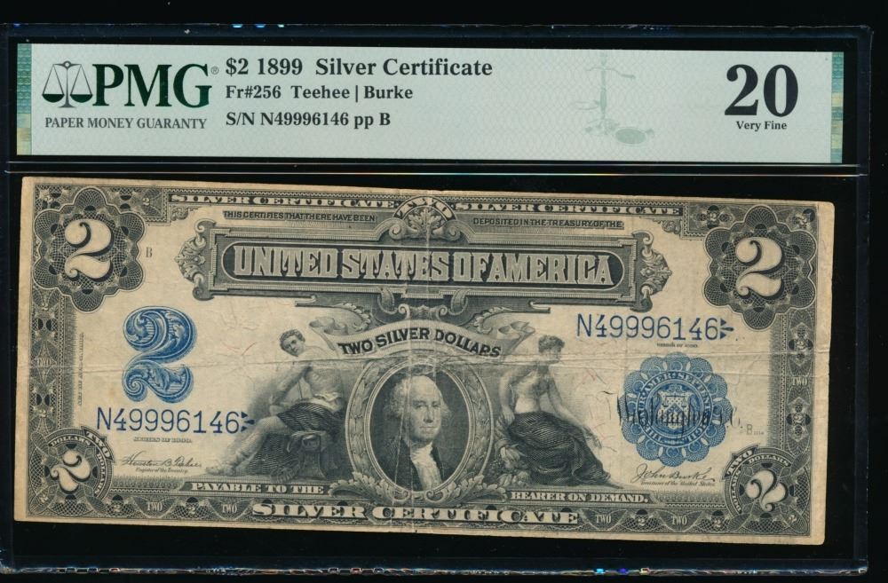 One 1899 $2 Mini Porthole Silver Certificate PMG 20.