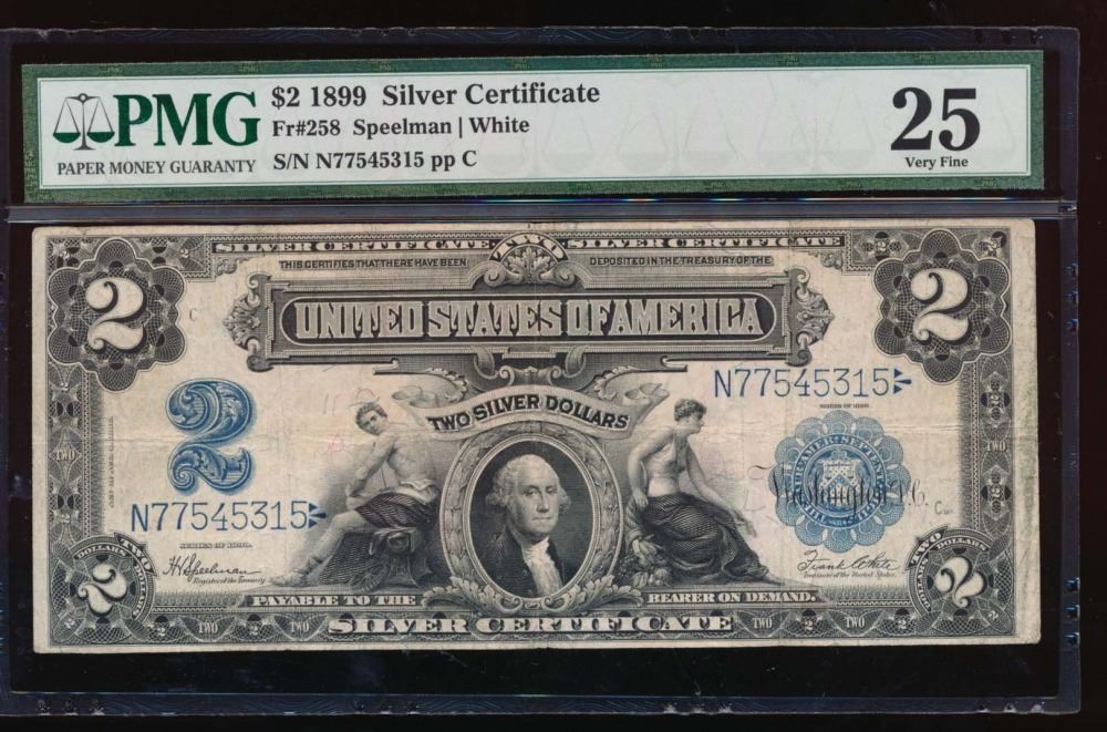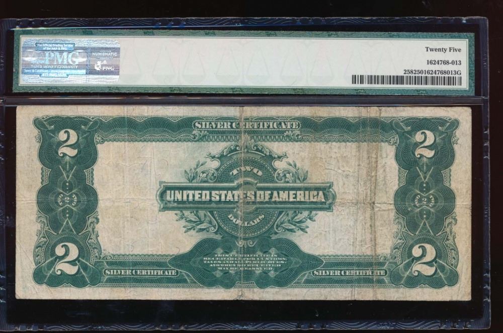 One 1899 $2 Mini Porthole Silver Certificate PMG 25.