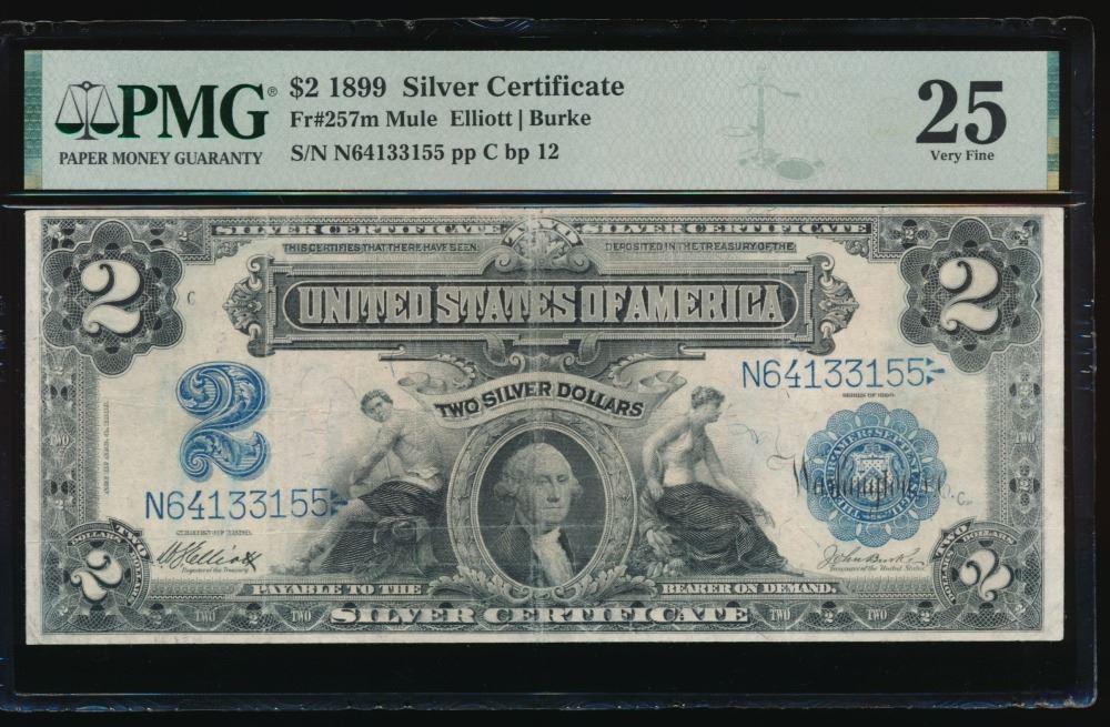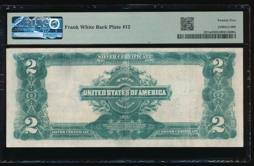 One 1899 $2 Mini Porthole Silver Certificate PMG 25.