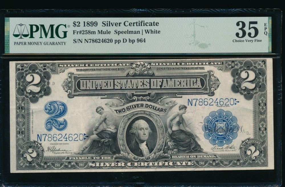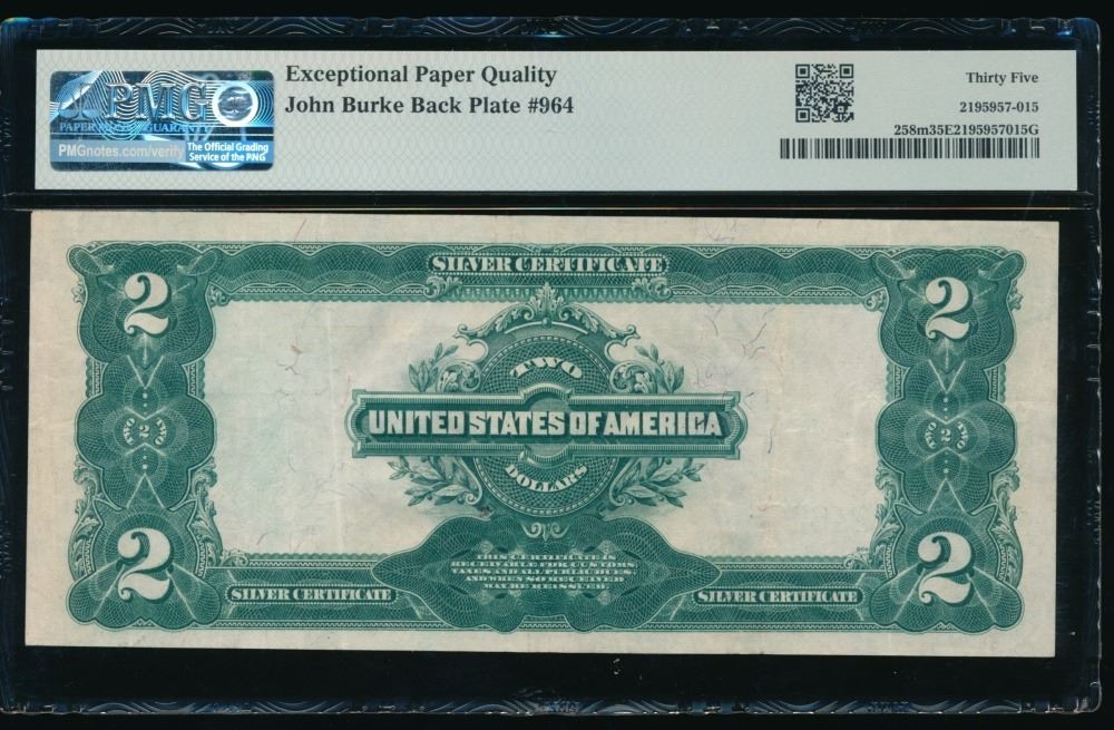 One 1899 $2 Mini Porthole Silver Certificate PMG 35EPQ.