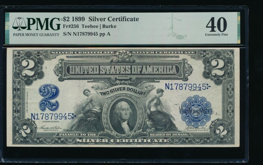 One 1899 $2 Mini Porthole Silver Certificate PMG 40.