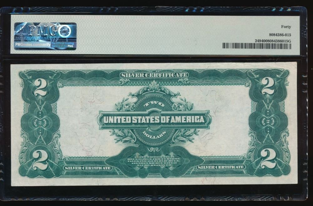 One 1899 $2 Mini Porthole Silver Certificate PMG 40.