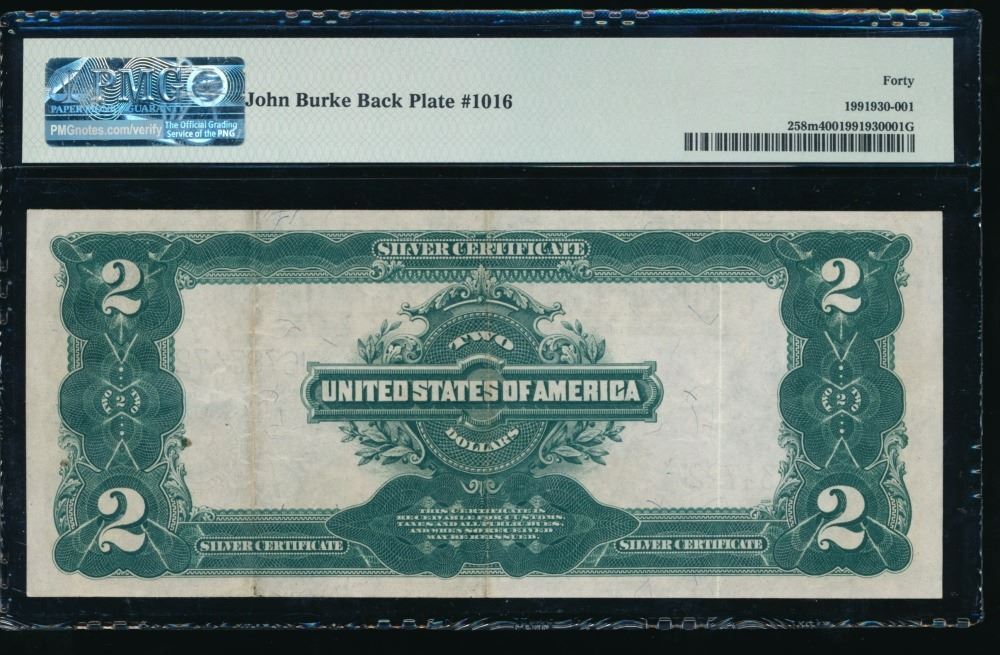 One 1899 $2 Mini Porthole Silver Certificate PMG 40.