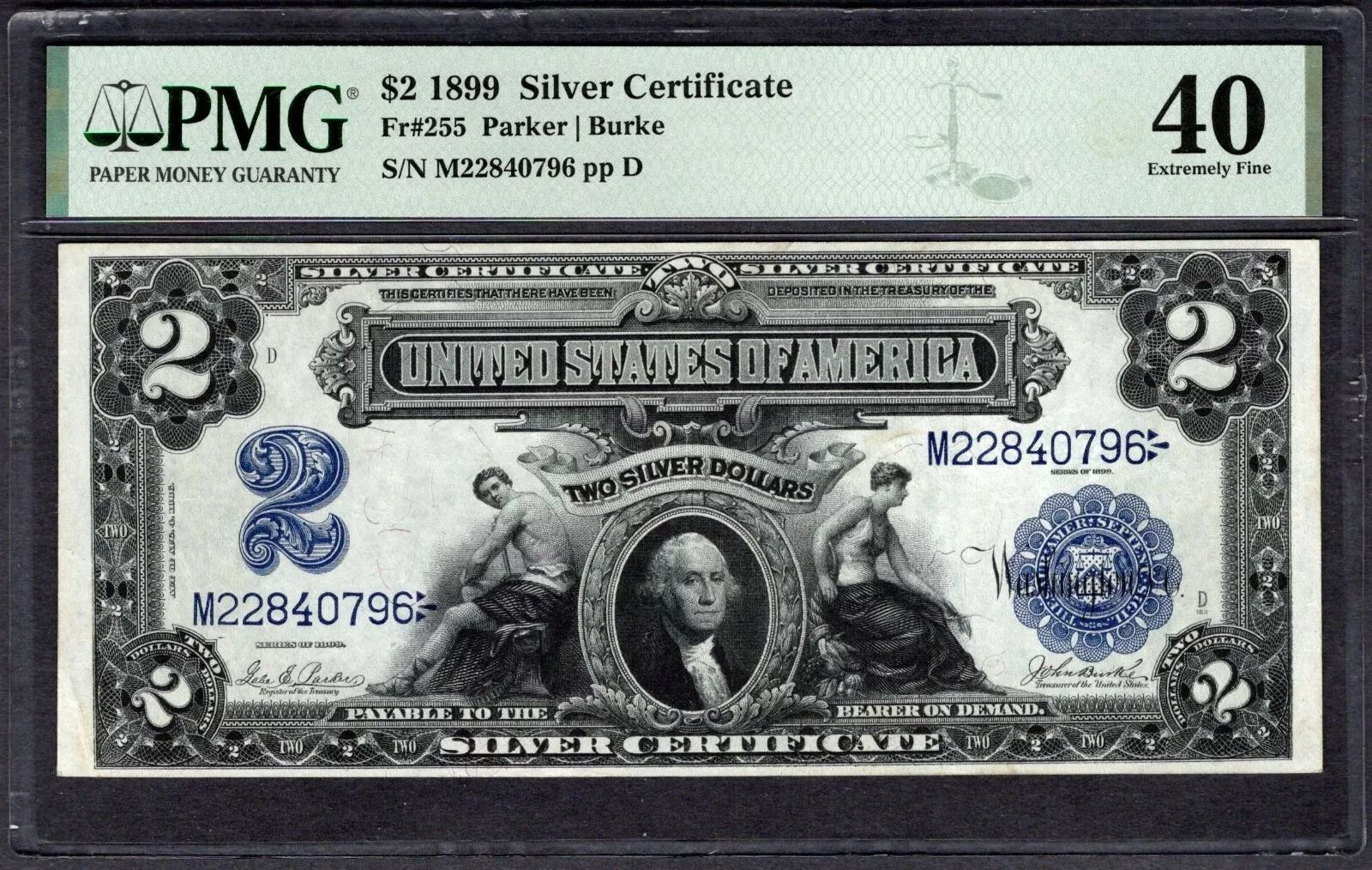 One 1899 $2 Mini Porthole Silver Certificate PMG 40.