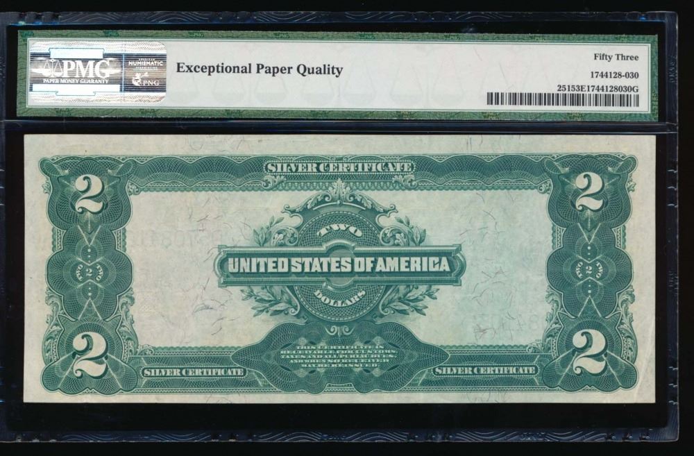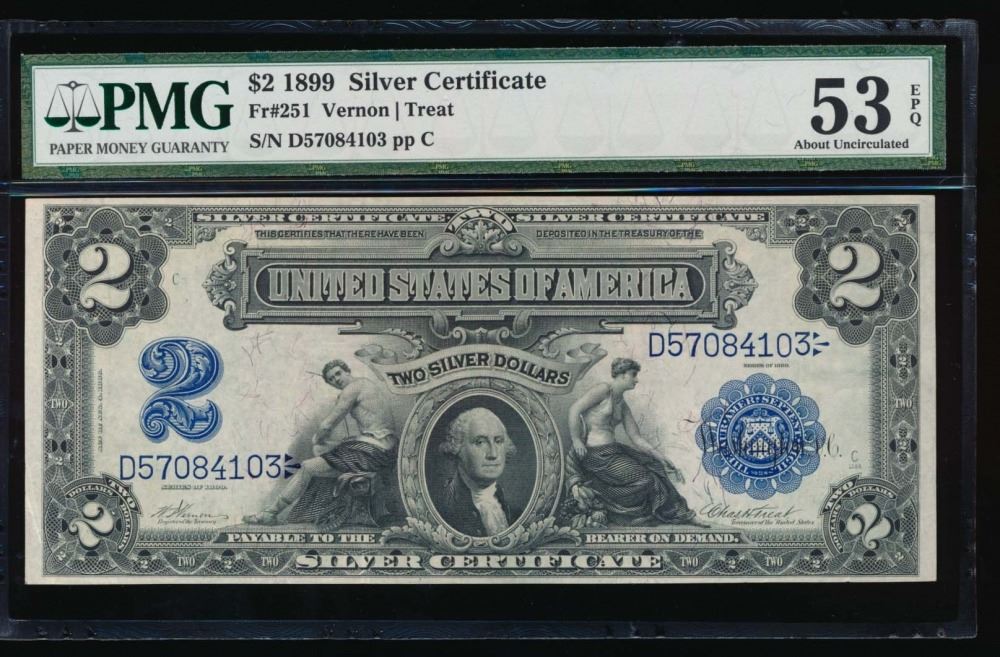 One 1899 $2 Mini Porthole Silver Certificate PMG 53EPQ.