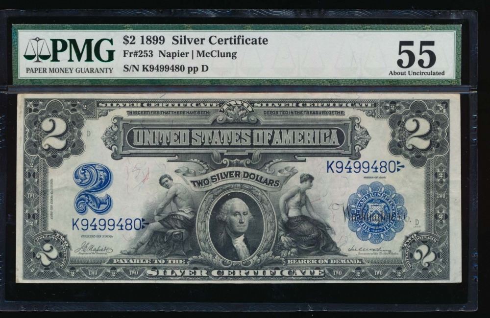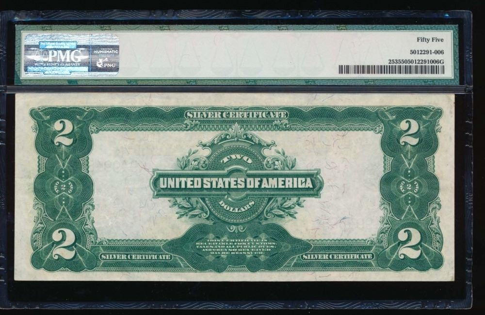 One 1899 $2 Mini Porthole Silver Certificate PMG 55.
