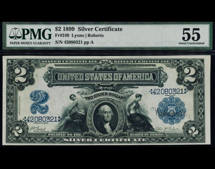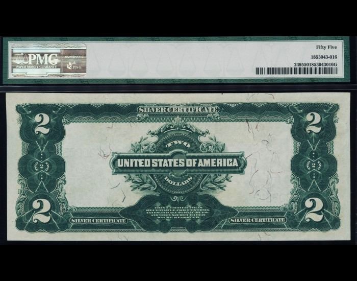 One 1899 $2 Mini Porthole Silver Certificate PMG 55.