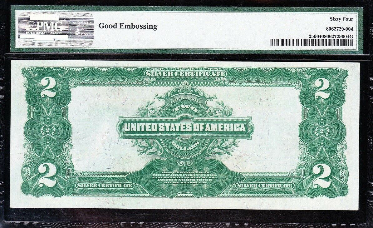 One 1899 $2 Mini Porthole Silver Certificate PMG 64.