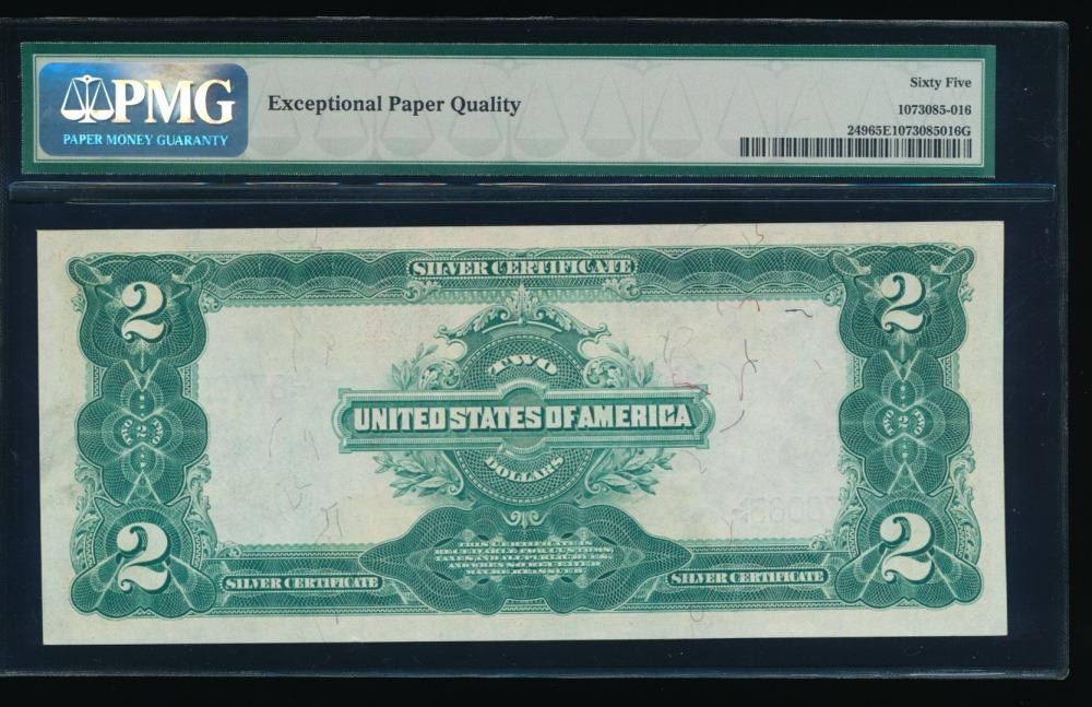One 1899 $2 Mini Porthole Silver Certificate PMG 65EPQ.