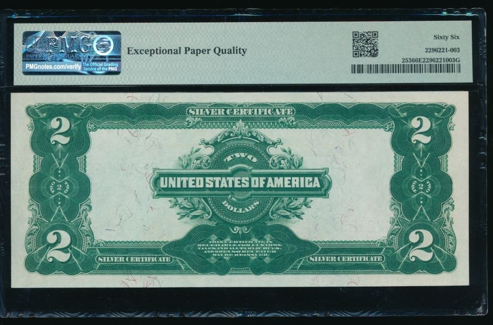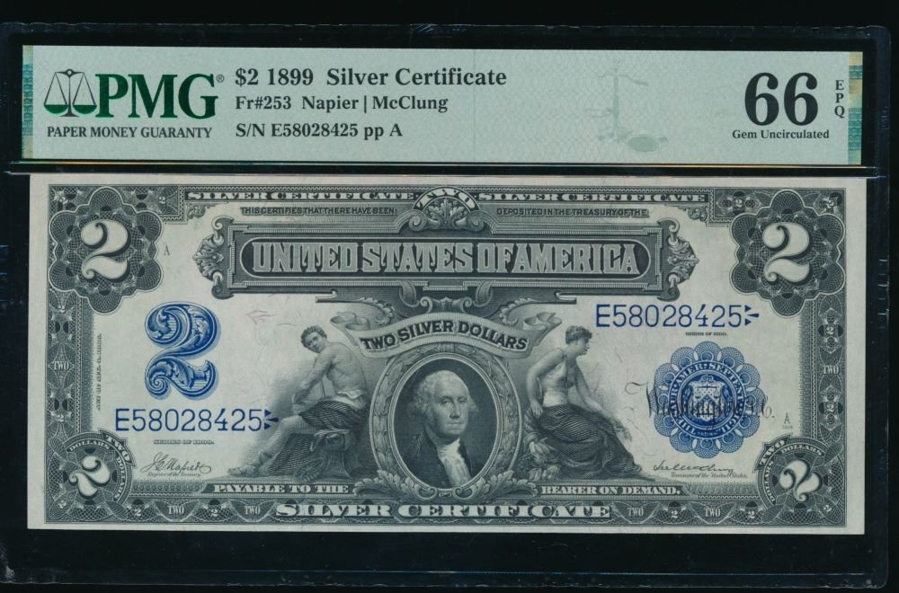 One 1899 $2 Mini Porthole Silver Certificate PMG 66EPQ.
