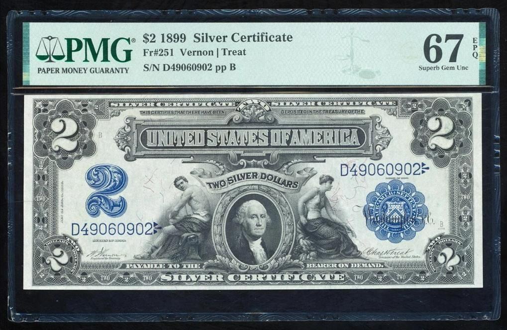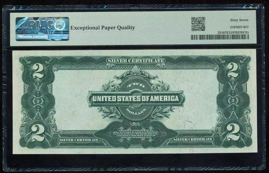 One 1899 $2 Mini Porthole Silver Certificate PMG 67EPQ.