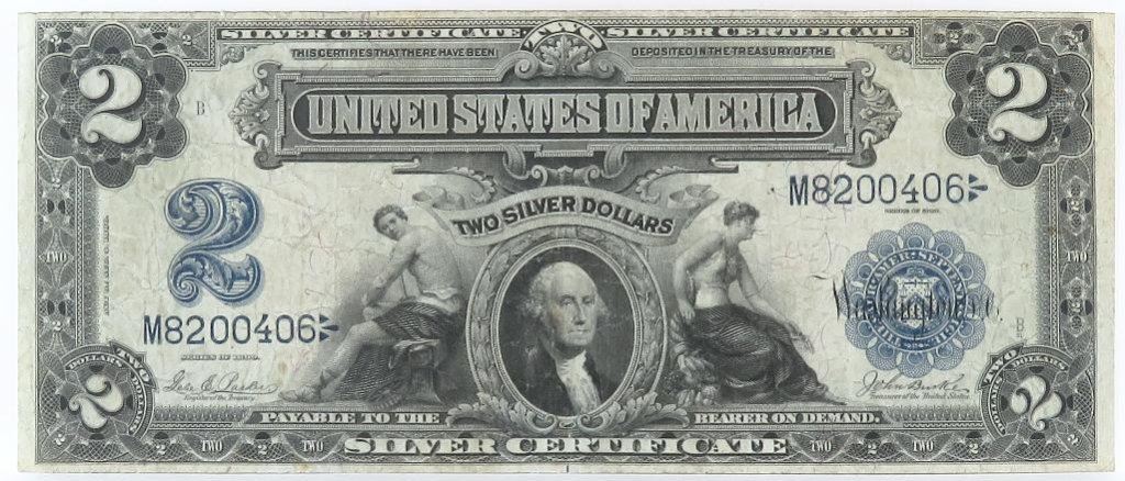 1899 $2 Silver Certificate Mechanics Agriculture Note. FR# 255.