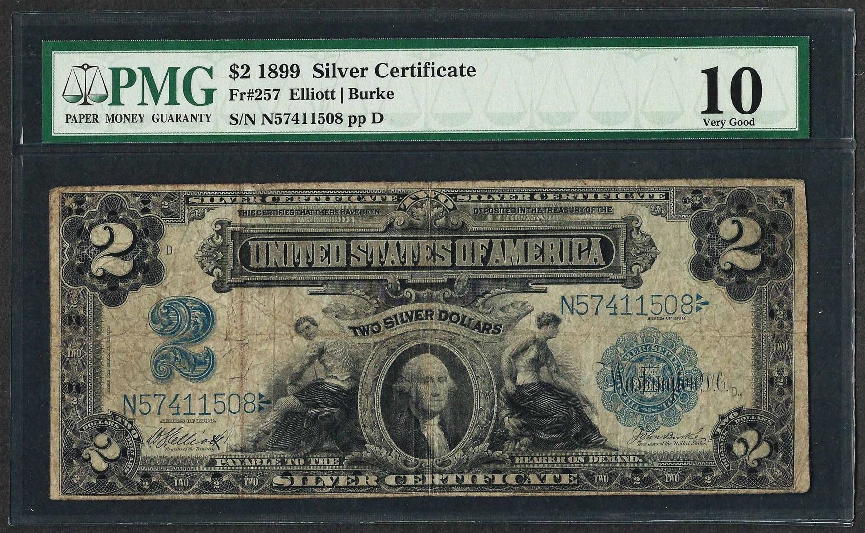 One 1899 $2 Silver Certificate Note Fr.257 PMG Very Fine 20. PMG Certified.