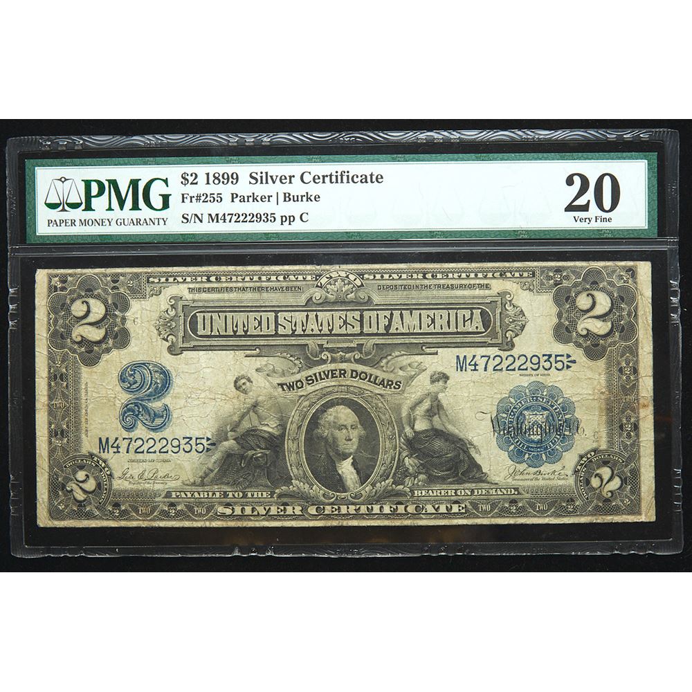 1899, 2 Silver Certificate. Fr-255. KL-136. PMG graded VF-20.  Estimated Value 110 - 120