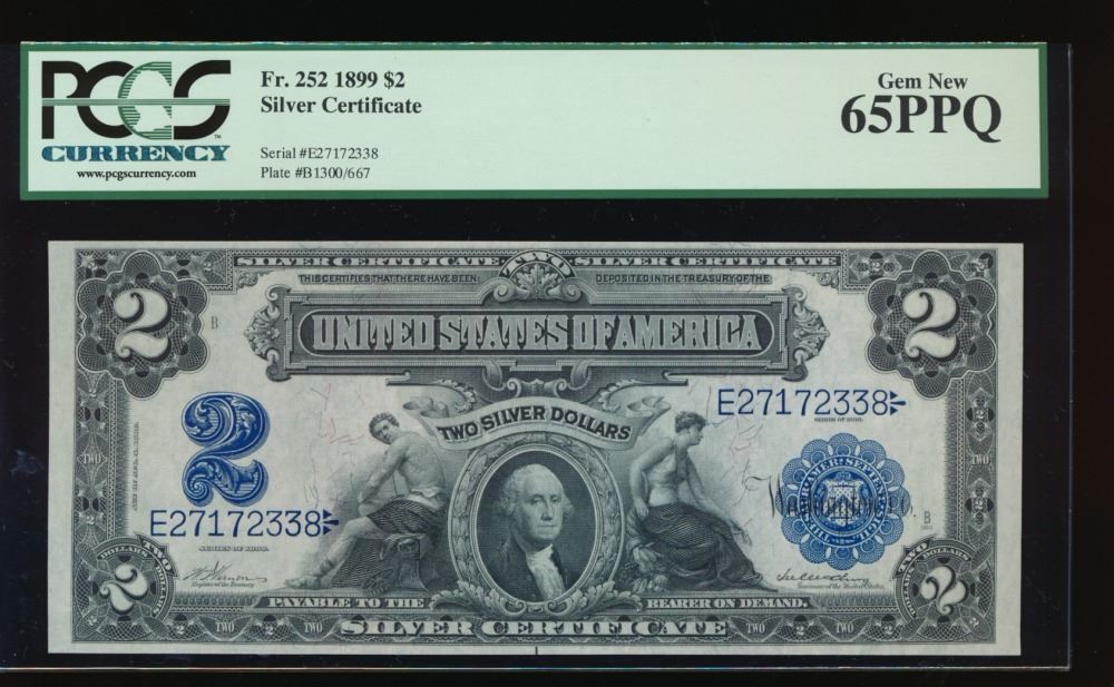 One 1899 $2 Washington Silver Certificate PCGS 65PPQ.