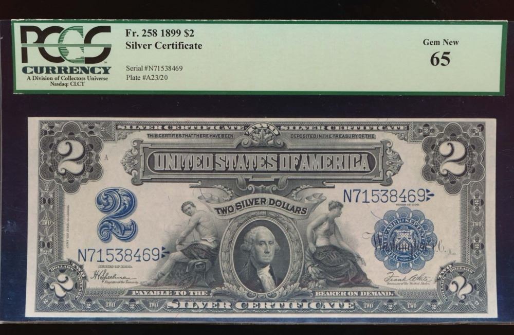 One 1899 $2 Washington Silver Certificate PCGS 65.