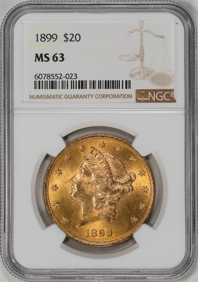 One 1899 $20 Liberty Head Double Eagle Gold Coin NGC MS63. NGC Certified.