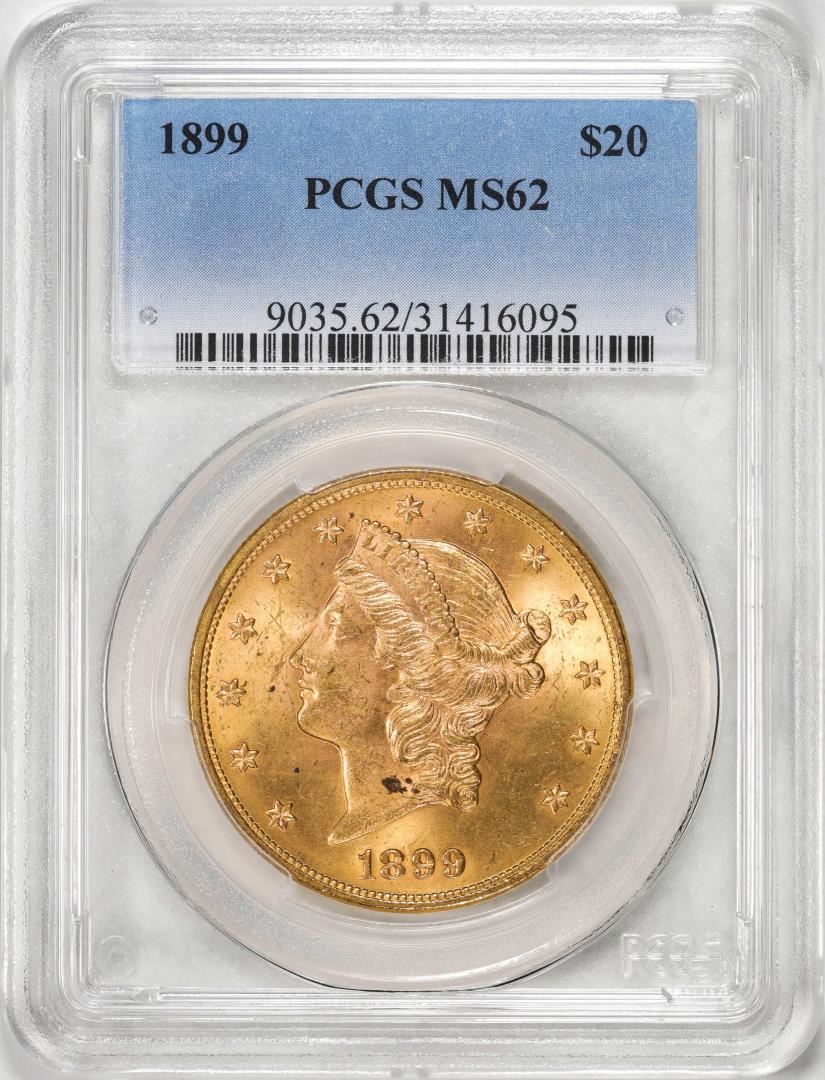 One 1899 $20 Liberty Head Eagle Gold Coin PCGS MS62. PCGS Graded.