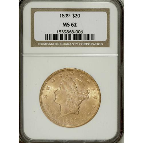 1899 $20 MS62 NGC. NGC Census: (6223/4148). PCGS P